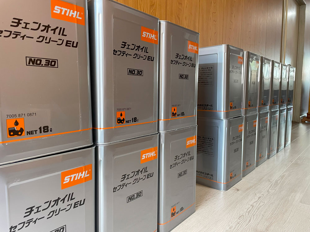 チェーンオイル、きのこの種菌、安全クサビ