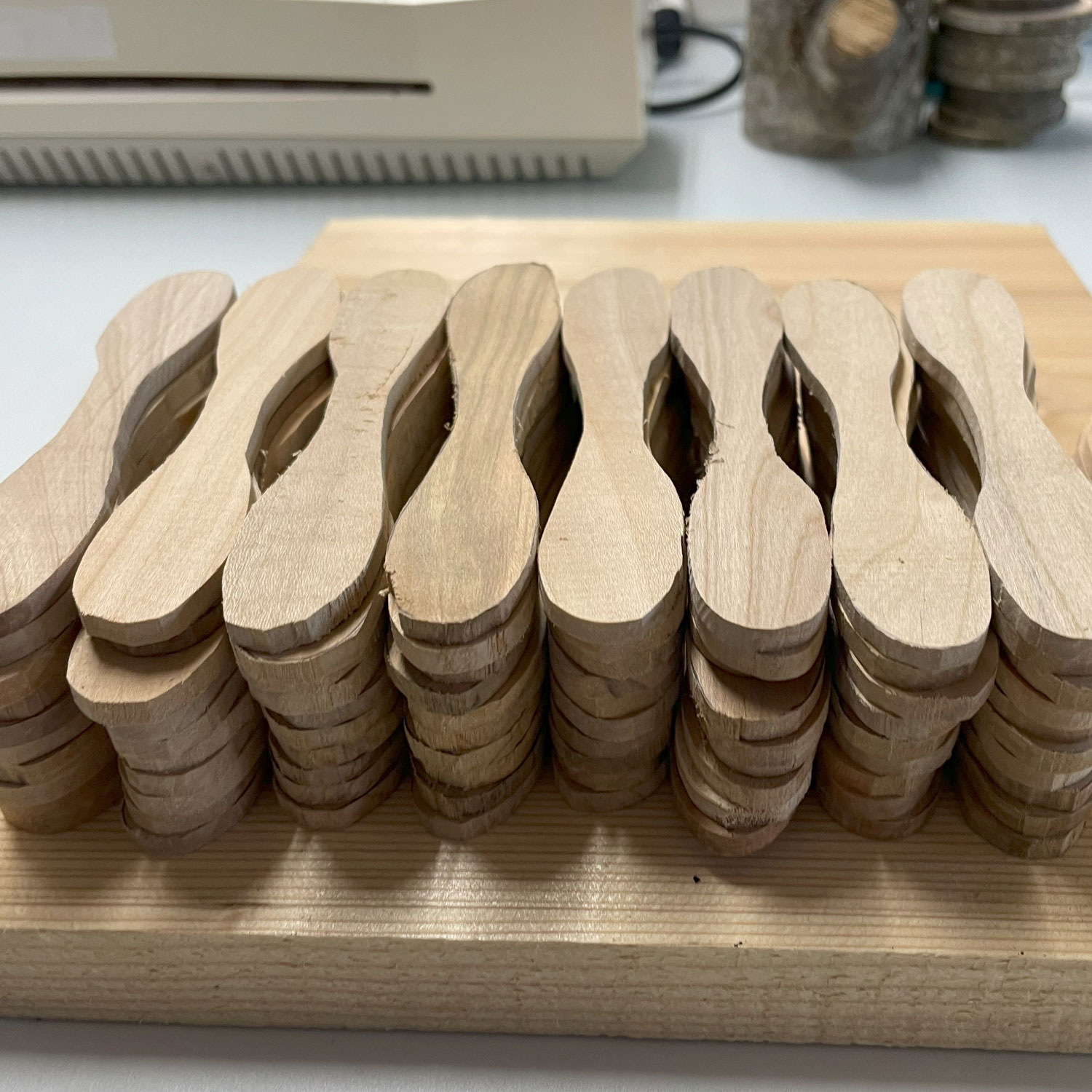 「木育」で使用できる木地になります。樹種はサクラなどの広葉樹、スギなどの針葉樹をご用意しております。広葉樹は堅く加工しづらいですが、耐久性があります。スギ材は柔らかく耐久性が劣りますが、加工しやすい特徴があります。詳しくは当組合までお問い合わせください。